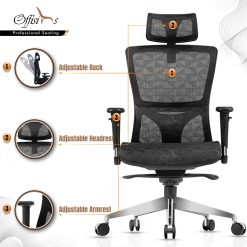 • The chair’s full-mesh design ensures excellent airflow, keeping you cool and comfortable while offering the necessary support for your back and pelvis.