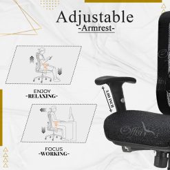- The armrests offer full adjustability in height, width, and angle, ensuring that your arms and shoulders are supported at the ideal position, relieving strain and promoting a relaxed seating experience.
