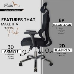 Ergonomic Excellence: Engineered to offer full-body ergonomic support, this chair is designed to align with your natural posture and reduce fatigue over extended periods.