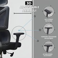 3D Adjustable Armrests: The 3D armrests adjust in height, angle, and depth (up/down, rotation, and slide), complete with soft PU padding for added comfort.