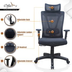 - The high back design ensures comprehensive support, especially for the midback and spine, offering the comfort needed during extended sitting periods.